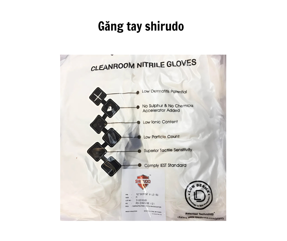 Shirudo 手套采用现代化生产线制造,通过 ISO 9001、ISO 13485 等国际质量标准认证,并符合 Class 100/1000 无尘室标准(视类型而定)。